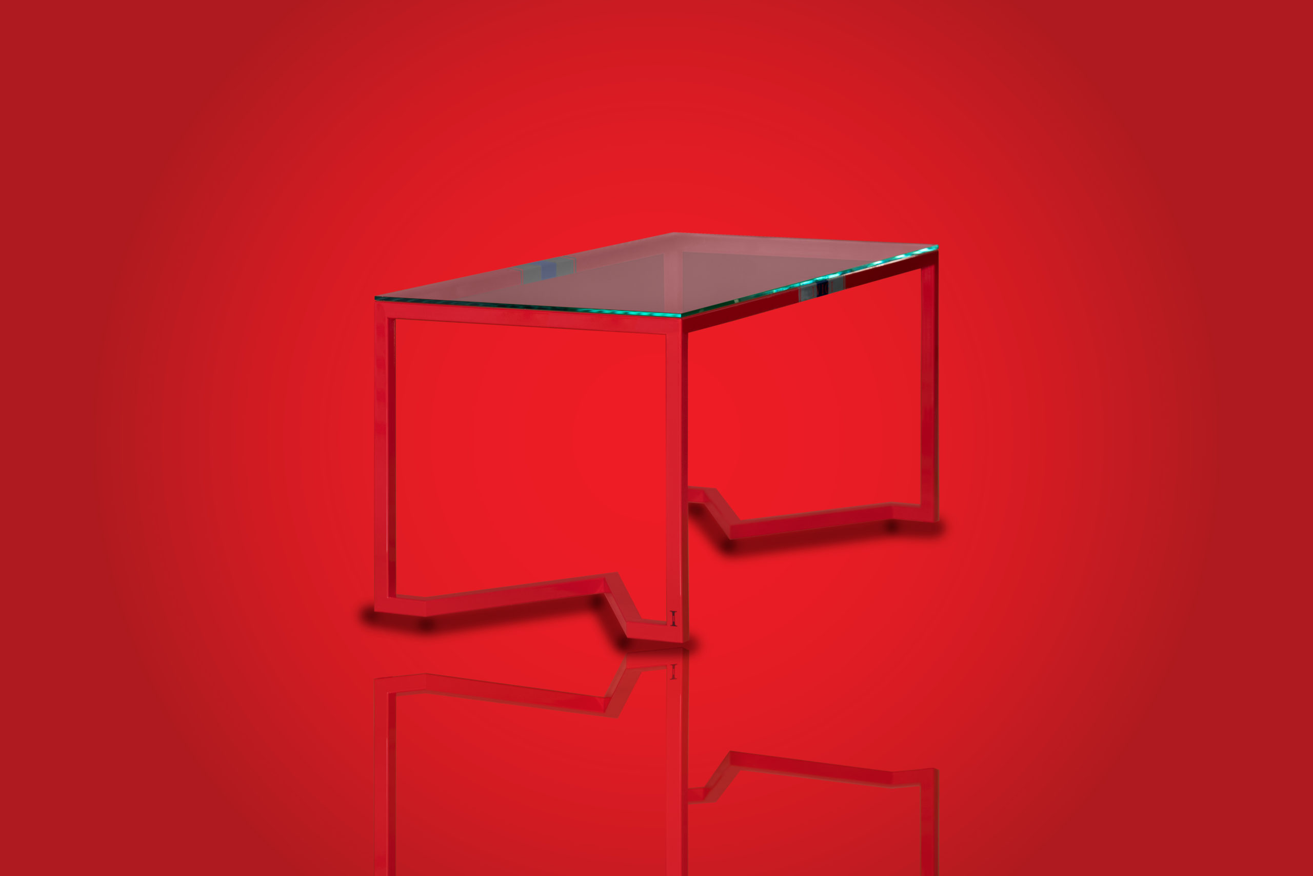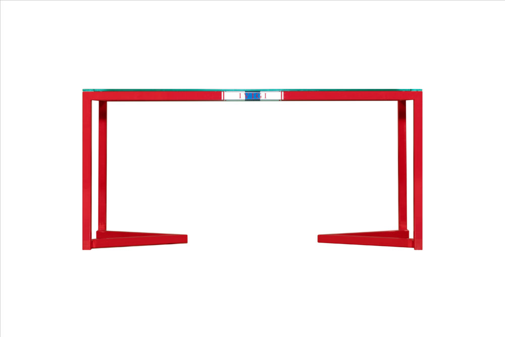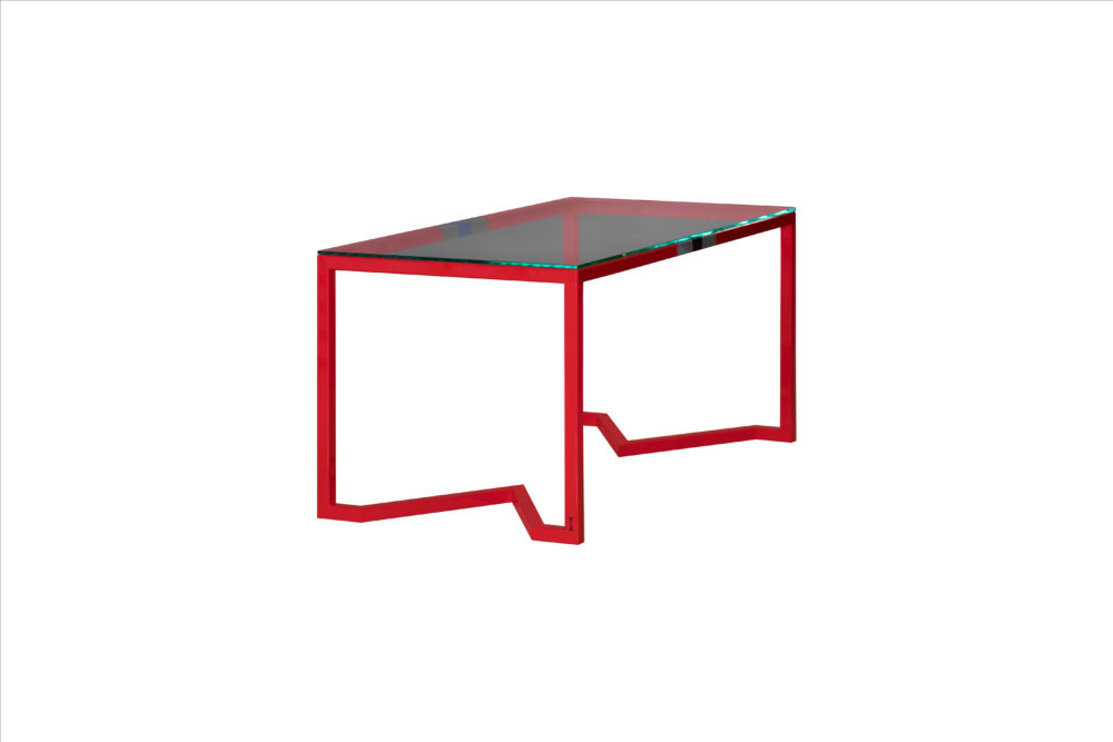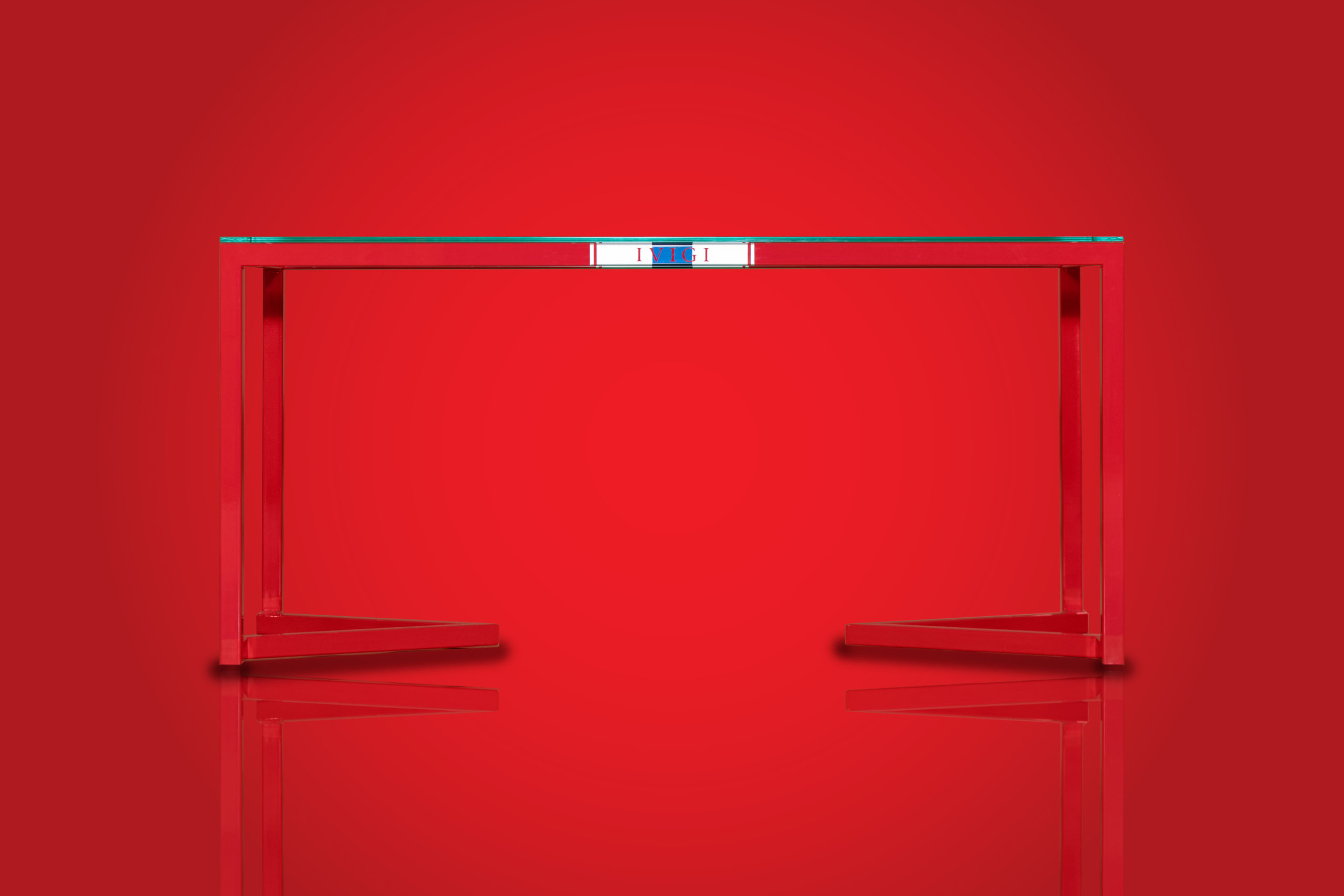 Les pieds de la table rappellent le V d’IVIGI et sont conçus de manière à ce que les pieds de la chaise s’insèrent parfaitement dans la pointe du V.